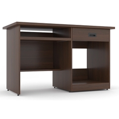 Kiểu dáng: Mặt bàn hình chữ nhật. Có khay để bàn phím và kệ để CPU. Bàn có ngăn kéo treo.