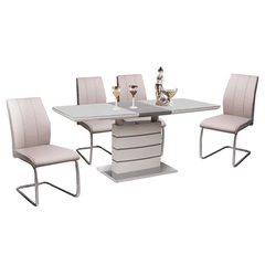 + Mặt bàn sử dụng kính cường lực, có tính năng mở rộng mặt bàn nhằm tăng diện tích sử dụng khi cần.