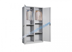 Tủ sắt sơn tĩnh điện gồm 2 khoang cánh mở, mỗi khoang có 2 đợt di động và một suốt treo quần áo.